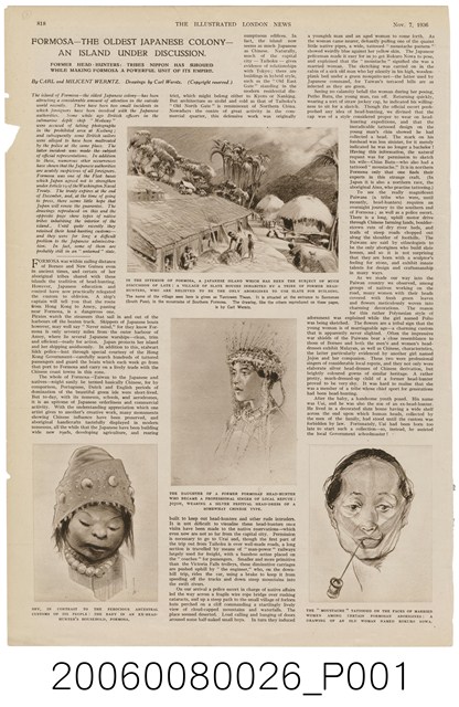 2006.008.0026 1936年11月7日《倫敦新聞畫報》之〈獵頭族〉