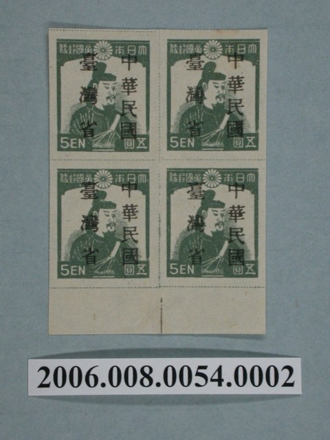 2006.008.0054.0002 4連張中華民國臺灣省暫用5圓郵票