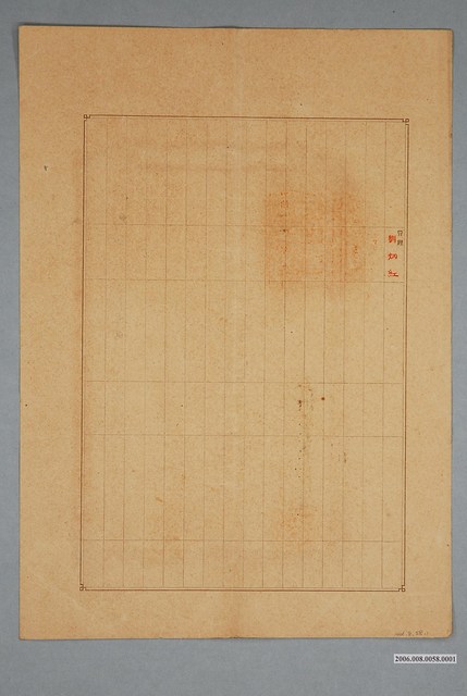 業主劉清元申請之土地臺帳謄本,由阿猴廳長佐佐木基發給,土地位置在阿猴廳港東上里五溝水庄八八九番地(位於今日屏東縣萬巒鄉)。地目為田,面積壹分七厘貳毫五絲,管理人劉炳紅,發給日期為明治37(1904)年3月1日。蓋有關防「阿猴廳印」及官印「阿猴廳長印」。