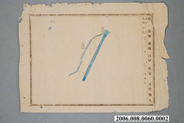 總督府在1904年完成土地調查後,依據調查結果設置土地臺帳和地籍圖冊。土地臺帳必搭配相關土地的地籍謄圖,其內容擷取自地籍圖正本(一般比例尺一千二百分之一,市街比例尺六百分之一,山地比例尺三千分之一),內容以土地位置、形狀、地番號、地目(建地、田地、旱地、林地、道路等)為主,右側制式表格列作落(位置)、地番、地目、甲數(面積)、業主、管理人等欄位。無地形描繪,無經緯度,地圖上方指北。