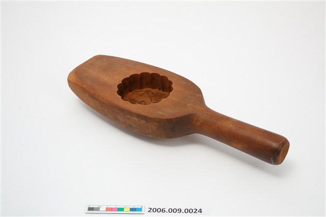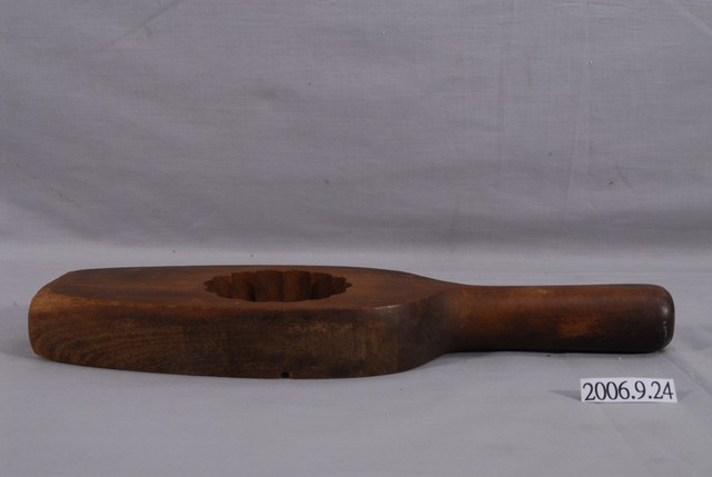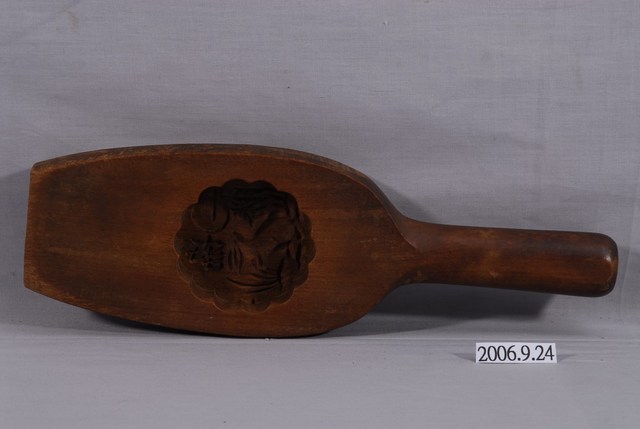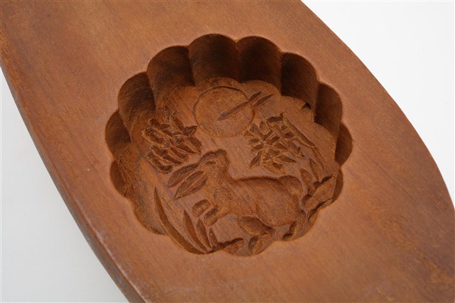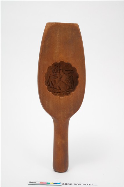 2006.009.0024 六甲協勝酒瓶形單面雕月兔帶柄餅印