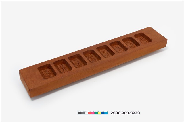 2006.009.0029 長條板單面雕八枚長方錠形糕印