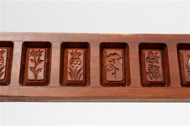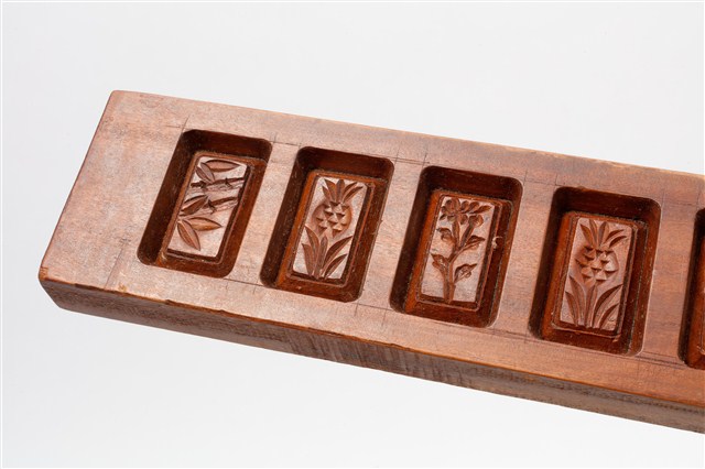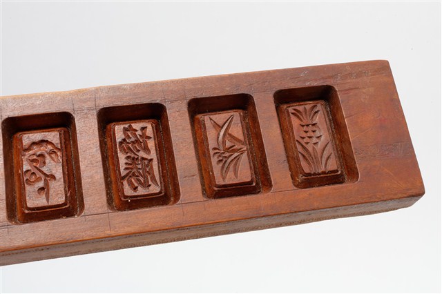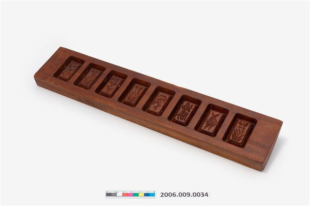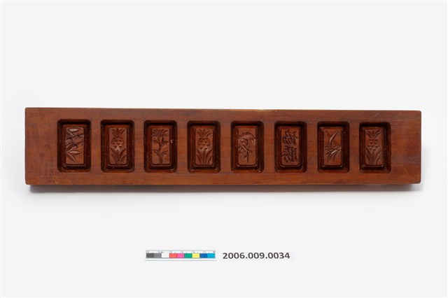 2006.009.0034 長條板單面八枚長方錠形糕印