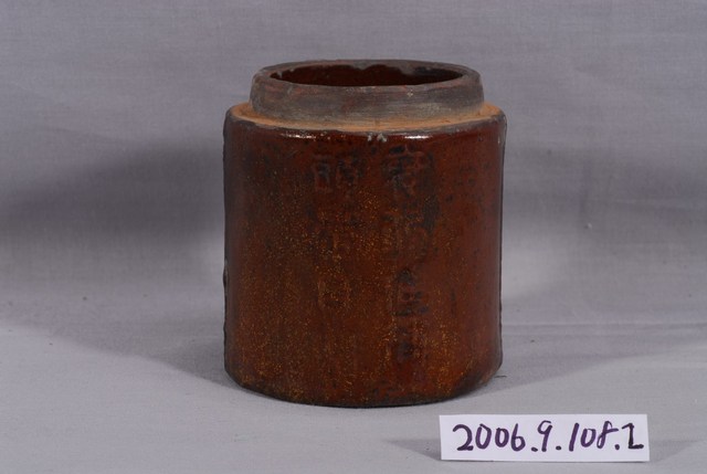 本物件為藥罐主體。藥罐主體為深磚紅色。罐身有凸起字樣,可辨識者為亞規鐵丸和衰弱。