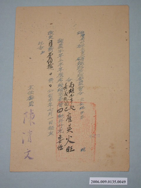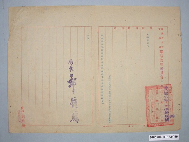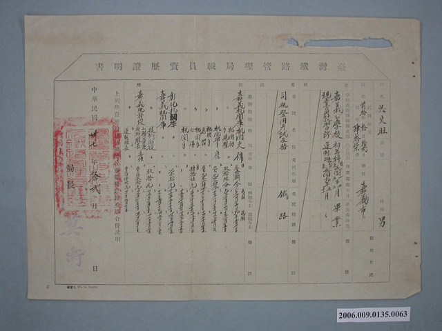 2006.009.0135 吳火旺日治至戰後初期鐵道任職履歷文書組