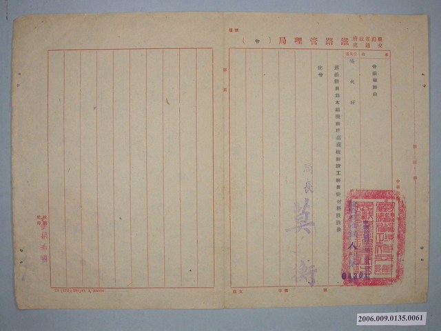 2006.009.0135.0061 民國40年臺灣省政府交通處鐵路管理局吳火旺派令
