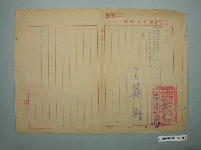 2006.009.0135.0062 民國40年臺灣省政府交通處鐵路管理局吳火旺免職令