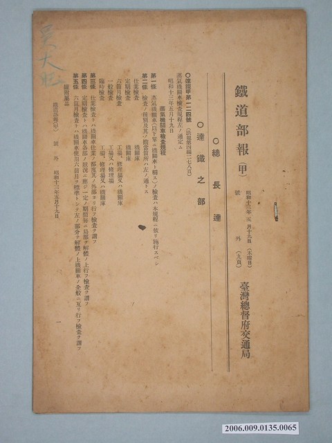 2006.009.0135.0065 昭和13年臺灣總督府交通局《鐵道部報(甲)》