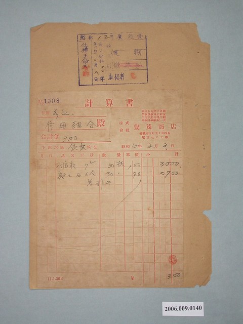 2006.009.0140 昭和12年嘉義市豐茂商店給水上信用組合之計算書