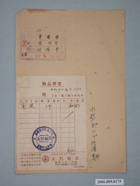 2006.009.0175 昭和17年嘉義市永利商店給水上信用組合納品傳票