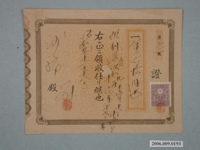 2006.009.0193 昭和9年謝龍收取之收據