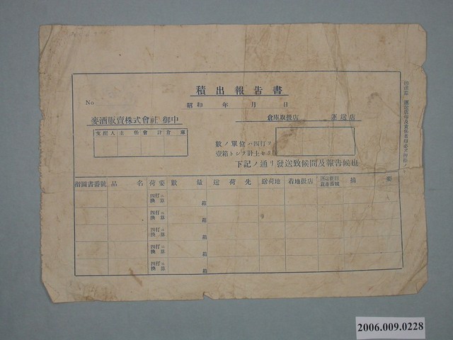本件背面為臺南市本町順興業棳店出荷,屏東市本町葉聯美受荷之便籤,內容為「屏東驛取扱,雨傘50支,共弍件,運金現拂,代工金ナシ,正代金引換証付,一金四拾壹円也」。正面為未使用之積出報告書。