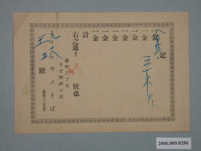 2006.009.0286 やぶそば給王井收據