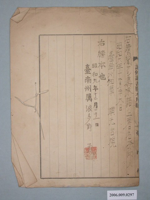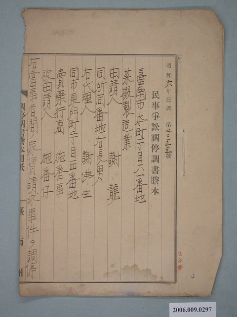 2006.009.0297 昭和6年民事爭訟調停調書謄本