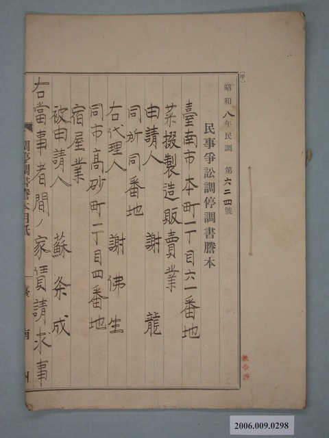 2006.009.0298 昭和8年民事爭訟調停調書謄本
