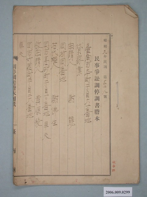 2006.009.0299 昭和9年至10年民事爭訟調停調書謄本