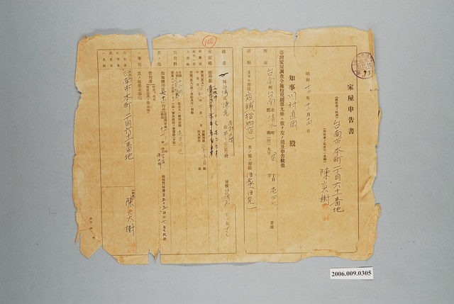 2006.009.0305 昭和12年陳炎樹家屋申告書