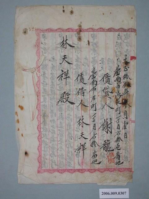 2006.009.0307 大正12年林天祥家屋賃貸借契約書