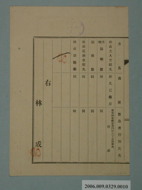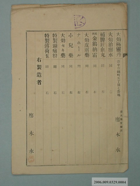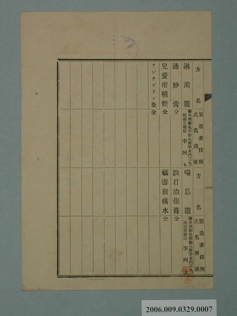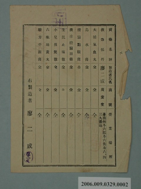 2006.009.0329.0002 賣藥販賣品目製造者廖二成