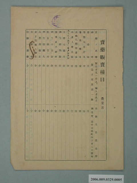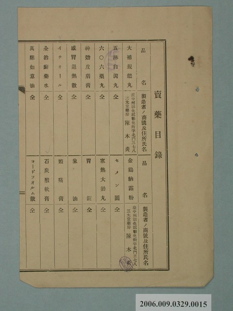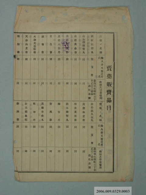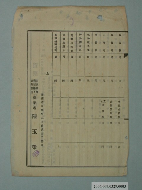 2006.009.0329.0003 賣藥販賣品目營業者陳玉榮
