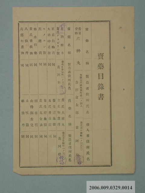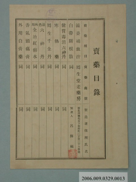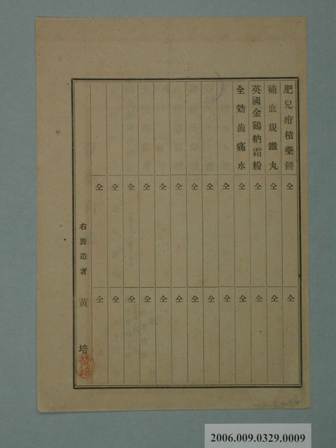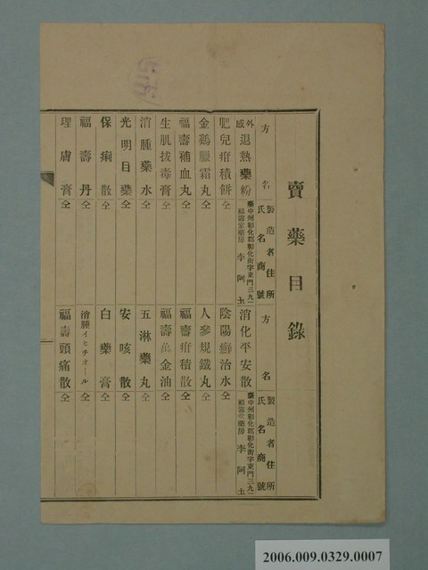 2006.009.0329.0009 賣藥目錄製造者黃培