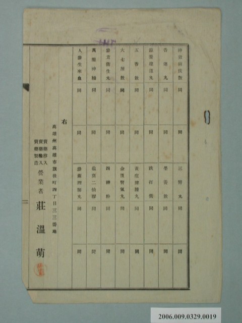 2006.009.0329.0019 賣藥販賣品目營業者莊溫萌