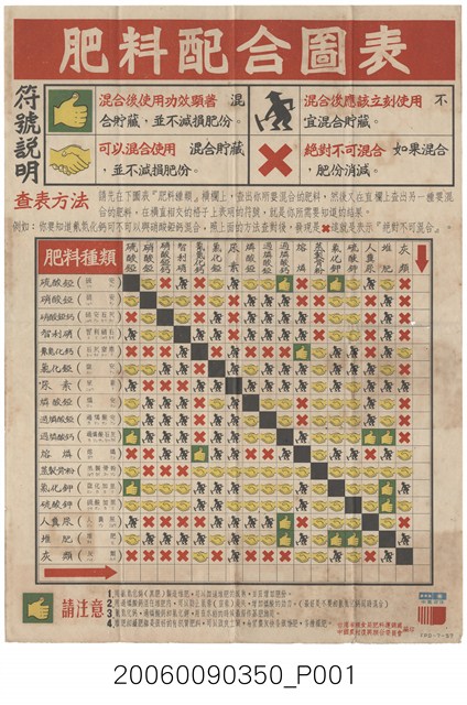 2006.009.0350 臺灣省糧食局肥料運銷處及中國農村復興聯合委員會編印之肥料配合圖表