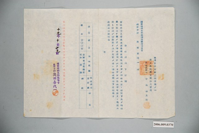2006.009.0370 昭和19年屏東郡里港庄至臺南驛輸送證明申請書
