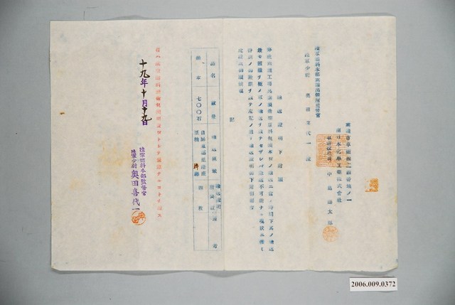 2006.009.0372 昭和19年屏東郡里港庄至楠梓驛輸送證明申請書