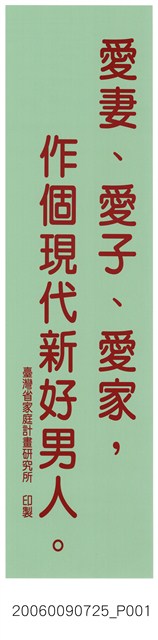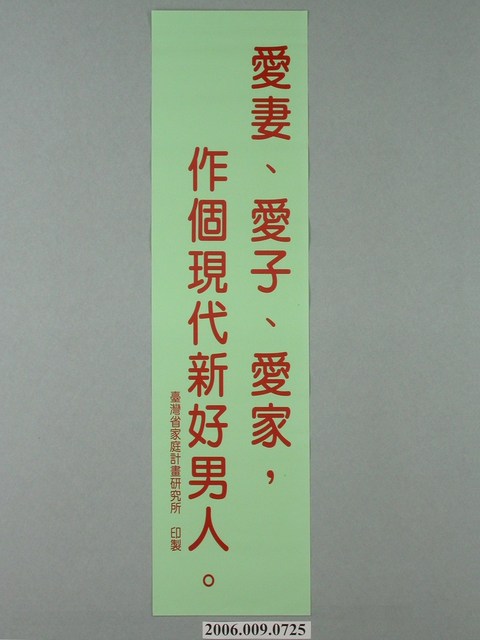2006.009.0725 臺灣省家庭計畫研究所印製「愛妻、愛子、愛家,作個現代新好男人」標語