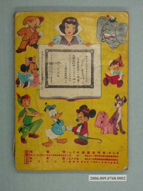 本件為《少年火箭隊》漫畫書1套2本之下冊,封面圖案為一名身著太空裝的主角,右手持鎗,背上有噴射器,背景有4支飛行中的火箭,上方有紅色字體「少年火箭隊」等字,下方有白色字體「教育部審定」、「文旭編畫」、「特選太空打鬥漫畫」及白色圓卷黑字的「下」。外觀老舊,書背略有剝裂情形,保存完整。
