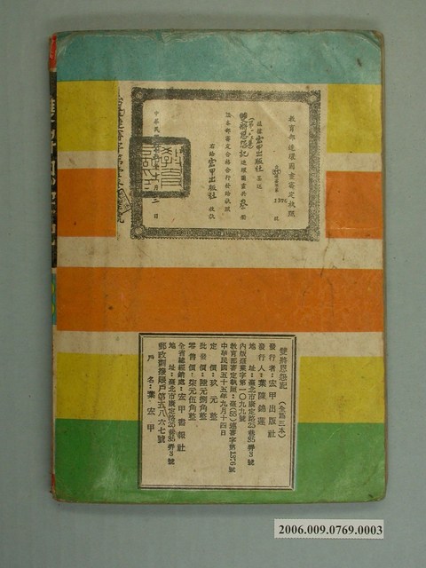 本件為《双將恩怨記》漫畫書1套3本的第3冊,封面為古裝著軍裝的書生與女性相會的畫面,中間有白底黑字的「葉宏甲作」、「黃錦堂畫」、「教育部審定作品」,以及紅底白字的「双裝恩怨記」,中間有紅色圓圈內白色字體「3」。外觀老舊,書背略有剝裂情形,保存完整。