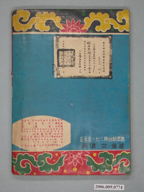 1.本件為文儒《頑石點頭》,內容敘述男主角剛正不阿的個性,時常為人打抱不平的英雄故事。封底有民國55年(1966)12月1日國立編譯館連環圖書畫審定執照的合格圖樣。2.漫畫是以圖像為呈現,具備繪畫、敘事、角色三要素,能因敘事而令圖像帶有個別意義、令作品內容獨立且完整的資訊載體。臺灣漫畫史上,民國55年(1966)實施「編印連環圖畫輔導辦法」嚴重衝擊漫畫創作,至民國76年(1987)解嚴,終止審查制度進入嶄新興盛的局面。