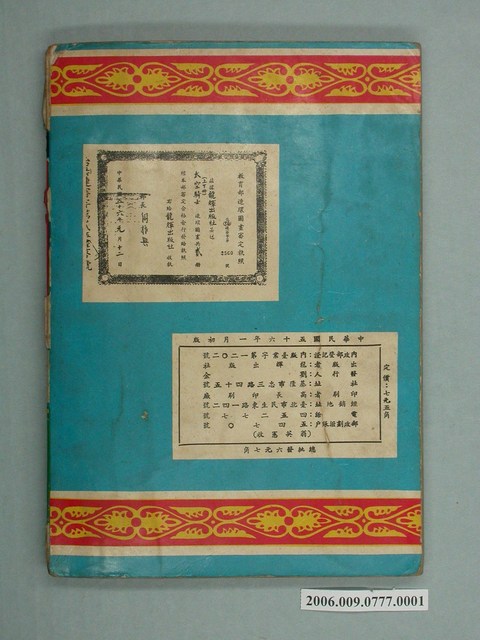 1.本件為龍輝出版社《太空騎士》上集,為一部宇宙星際漫畫,內容敘述主角與飾演反派角色,穿梭於各星球之間戰鬥,最後邪不勝正的故事。封底有民國56年(1967)1月12日國立編譯館連環圖書畫審定執照的合格圖樣。2.漫畫是以圖像為呈現,具備繪畫、敘事、角色三要素,能因敘事而令圖像帶有個別意義、令作品內容獨立且完整的資訊載體。臺灣漫畫史上,民國55年(1966)實施「編印連環圖畫輔導辦法」嚴重衝擊漫畫創作,至民國76年(1987)解嚴,終止審查制度進入嶄新興盛的局面。