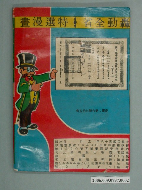 本件為《少年羅賓》漫畫書第2集,本書繪者為海文,由義明出版有限公司出版,民國58(1969)年11月出版,內政部登記證臺業字第0441號,定價為新台幣七元五角。本書保存狀態尚佳,書籍邊角些微磨損。