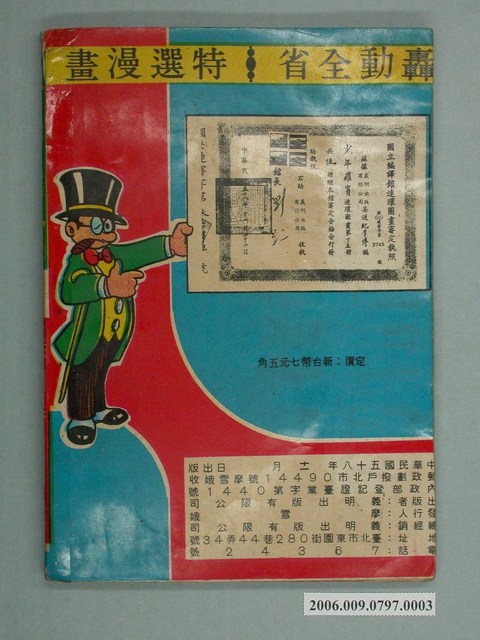 本件為《少年羅賓》漫畫書第3集,本書繪者為海文,由義明出版有限公司出版,民國58(1969)年11月出版,內政部登記證臺業字第0441號,定價為新台幣7元5角。本書保存狀態尚佳,書籍邊角些微磨損。