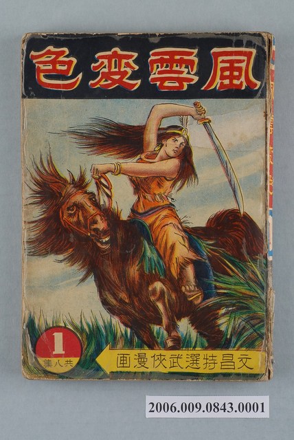 本書為《風雲変色》漫畫書第1集,本書由文昌出版社有限公司出版,書籍保存狀態尚佳,僅書籍有些許磨損,封面有「文昌特選武俠漫畫」字樣,封底處有文昌字樣的圖案以及英文「WEN CHANG」。