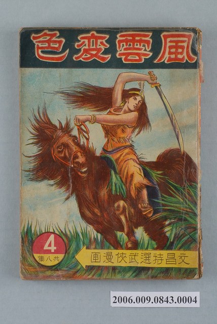 本書為《風雲変色》漫畫書第4集,本書由文昌出版社有限公司出版,書籍保存狀態尚佳,僅書籍有些許磨損,封面有「文昌特選武俠漫畫」字樣,封底處有文昌字樣的圖案以及英文「WEN CHANG」。