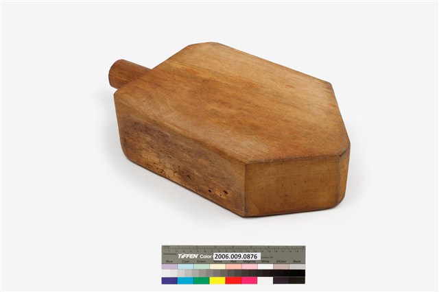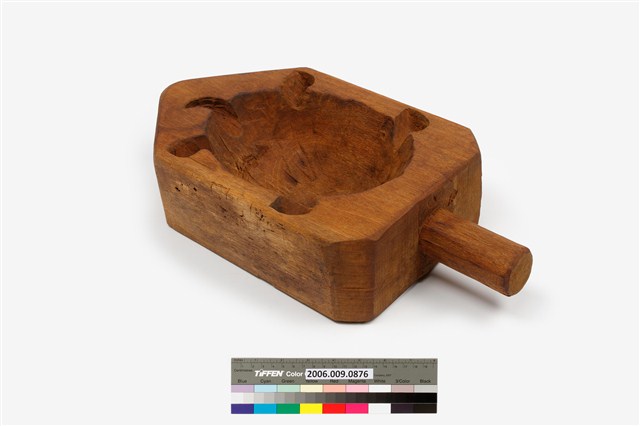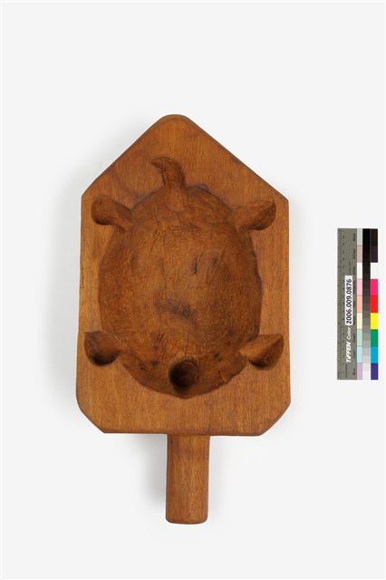 2006.009.0876 五邊形單面雕立體龜形帶短柄粿印