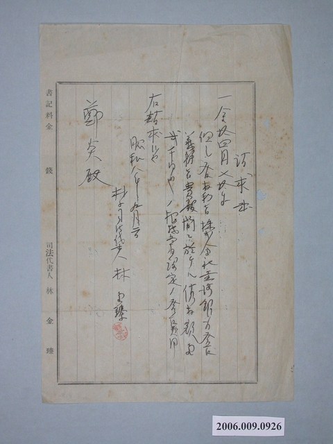 2006.009.0926 昭和8年司法代理人林金臻給鄭炎之請求書