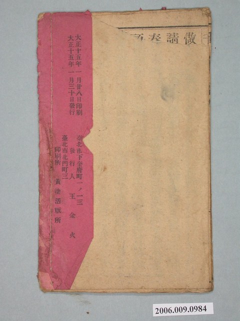 2006.009.0984 王金火發行《千金譜》