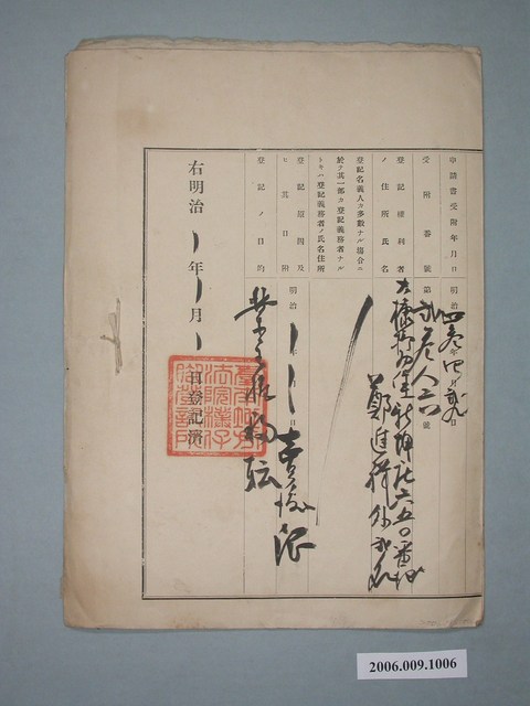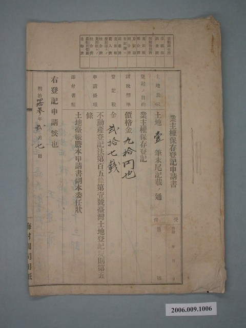 2006.009.1006 明治43年王蓮蒲立業主權保存登記申請書