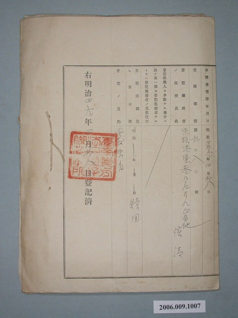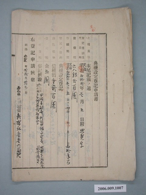 2006.009.1007 明治39年鄭連等人合立典權設定登記申請書