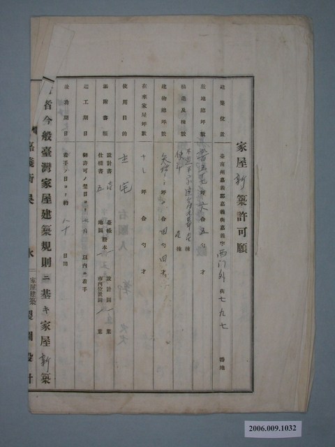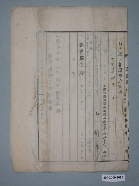 2006.009.1032 昭和3年鄭炎給嘉義郡守家屋新築許可申請書