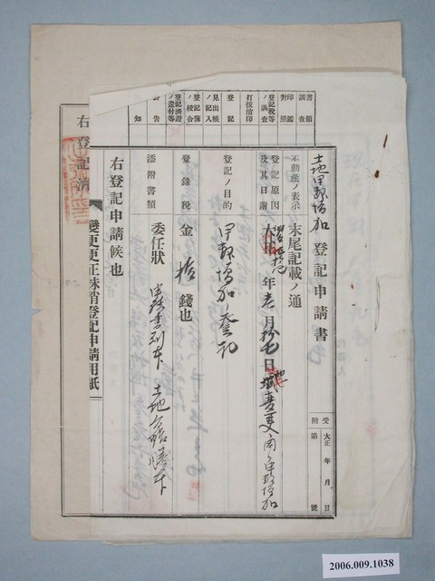 2006.009.1038 大正14年鄭炎給臺南地方法院朴子出張所土地甲數增加登記申請書