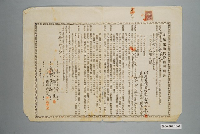 2006.009.1061 昭和10年臺南市謝佛生給黃氏足家屋建物賃貸借契約書