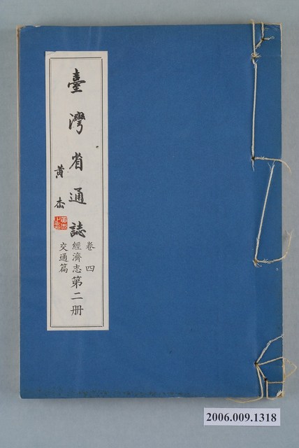1.本物件為臺灣省文獻委員會出版的《臺灣省通志》卷四經濟志交通篇第二冊,採線裝裝訂。封面、封底底圖均為藍色。本篇分為概說、公路、鐵路、港灣、航運、航空、郵政、電信、觀光事業等9章,本冊收錄第3章鐵路全部內容,以及第4章港灣之前半部內容。2.1948年6月,臺灣省通志館成立,由林獻堂任館長,主持臺灣省通志纂修事宜。1949年,臺灣省通志館改為臺灣省文獻委員會(簡稱省文獻會);1951年,內政部核備臺灣省通志稿纂修綱目,開始撰稿。先後在1960年完成大部分的篇章(斷限至戰後初期),以及1967年完成增修(斷限至1961年)。由於1960年的原修稿與1967年的增修稿作者眾多,難以連貫,相互牴觸之處不少,以致難以付梓,1966年,省文獻會成立整理小組,展開通志稿整修計畫,調整原志綱目,制定整修辦法,以省文獻會主任委員張炳楠為監修,副主任委員李汝和、林衡道為主修兼總編纂,開始整修計畫。1973年6月,臺灣省通志全書完成出版,不含卷首、卷尾,共10卷、10志、78篇、146冊,總字數約1,877萬字。本物件經濟志交通篇共有4冊,於1969年6月30日出版。