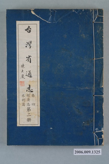 2.1948年6月,臺灣省通志館成立,由林獻堂任館長,主持臺灣省通志纂修事宜。1949年,臺灣省通志館改為臺灣省文獻委員會(簡稱省文獻會);1951年,內政部核備臺灣省通志稿纂修綱目,開始撰稿。先後在1960年完成大部分的篇章(斷限至戰後初期),以及1967年完成增修(斷限至1961年)。由於1960年的原修稿與1967年的增修稿作者眾多,難以連貫,相互牴觸之處不少,以致難以付梓,1966年,省文獻會成立整理小組,展開通志稿整修計畫,調整原志綱目,制定整修辦法,以省文獻會主任委員張炳楠為監修,副主任委員李汝和、林衡道為主修兼總編纂,開始整修計畫。1973年6月,臺灣省通志全書完成出版,不含卷首、卷尾,共10卷、10志、78篇、146冊,總字數約1,877萬字。本物件經濟志水利篇共有3冊,於1971年6月30日出版。
