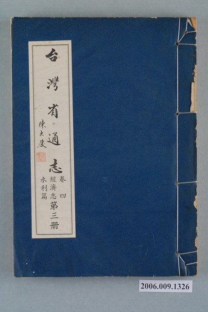 2.1948年6月,臺灣省通志館成立,由林獻堂任館長,主持臺灣省通志纂修事宜。1949年,臺灣省通志館改為臺灣省文獻委員會(簡稱省文獻會);1951年,內政部核備臺灣省通志稿纂修綱目,開始撰稿。先後在1960年完成大部分的篇章(斷限至戰後初期),以及1967年完成增修(斷限至1961年)。由於1960年的原修稿與1967年的增修稿作者眾多,難以連貫,相互牴觸之處不少,以致難以付梓,1966年,省文獻會成立整理小組,展開通志稿整修計畫,調整原志綱目,制定整修辦法,以省文獻會主任委員張炳楠為監修,副主任委員李汝和、林衡道為主修兼總編纂,開始整修計畫。1973年6月,臺灣省通志全書完成出版,不含卷首、卷尾,共10卷、10志、78篇、146冊,總字數約1,877萬字。本物件經濟志水利篇共有3冊,於1971年6月30日出版。