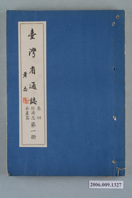 2.1948年6月,臺灣省通志館成立,由林獻堂任館長,主持臺灣省通志纂修事宜。1949年,臺灣省通志館改為臺灣省文獻委員會(簡稱省文獻會);1951年,內政部核備臺灣省通志稿纂修綱目,開始撰稿。先後在1960年完成大部分的篇章(斷限至戰後初期),以及1967年完成增修(斷限至1961年)。由於1960年的原修稿與1967年的增修稿作者眾多,難以連貫,相互牴觸之處不少,以致難以付梓,1966年,省文獻會成立整理小組,展開通志稿整修計畫,調整原志綱目,制定整修辦法,以省文獻會主任委員張炳楠為監修,副主任委員李汝和、林衡道為主修兼總編纂,開始整修計畫。1973年6月,臺灣省通志全書完成出版,不含卷首、卷尾,共10卷、10志、78篇、146冊,總字數約1,877萬字。本物件經濟志水產篇共有2冊,於1969年6月30日出版。
